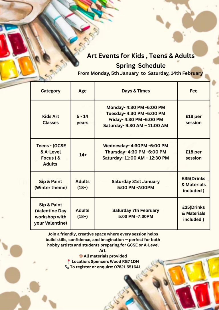 Art Classes. Kids , Adults GCSE & Sip Paint Sessions
